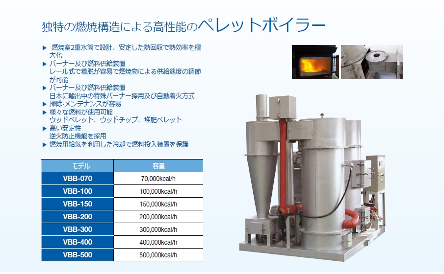 ペレットボイラー、高性能ペレットボイラー、ウッドペレット、ウッドチップ、堆肥ペレット使用