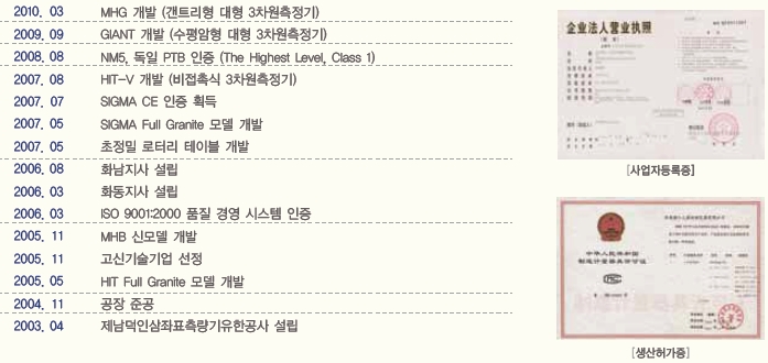 2003 4월 산동성 제남시에 설립된 제남덕인삼차원측량기유한공사는 지난 10여년간 초정밀 3차원 측정기인 PFB와 대형 3차원 측정기인 GIANT, MHG 등 개발하여 한국, 중국 및 해외국가에서 개최하는 전시회에 소개함으로써 그 기술력을 인정받음과 동시에 연간 300대 생산규모를 갖추고 세계 최고 수준의 명품 3차원 측정기를 중국시장에 공급해 왔습니다.