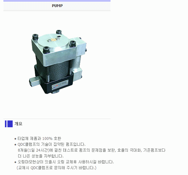 - QDC클램프의 기술이 집약된 펌프입니다.