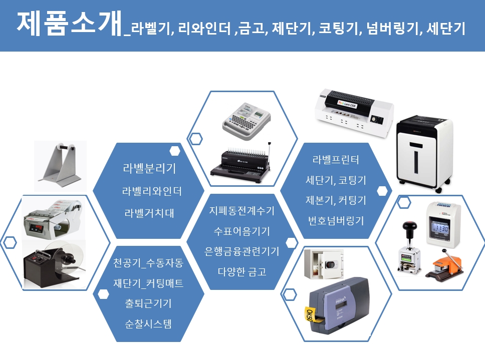 라벨기, 리와인더 ,금고, 제단기, 코팅기, 넘버링기, 세단기