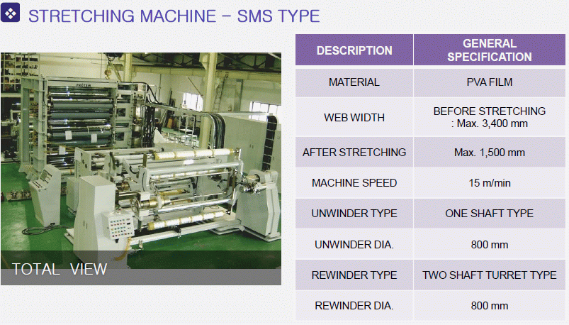 stretching machine for processing thin film materials