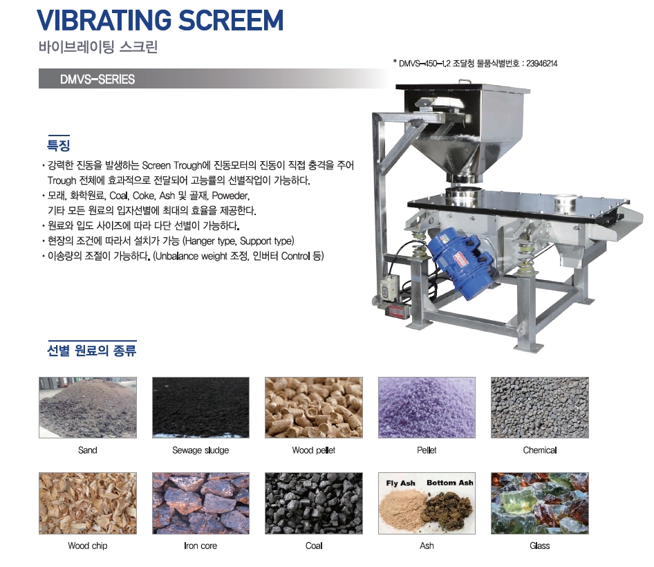 바이브레이팅 스크린,건축자재 고능률 선별작업기(모래,화학원료,골재등)