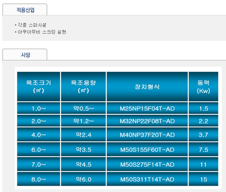 펌 프 용 량 : 시설 규모와 조건에 맞추어 선정