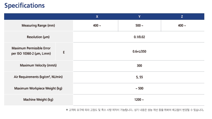 - 각 축 화강암 사용으로 열 변형 최소화