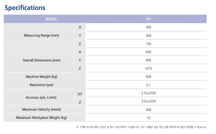 - 터치프로브 센서를 적용하여 접촉/비접촉 겸용 측정가능