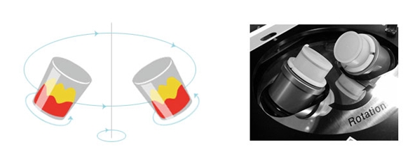 Paste mixer는 재료가 든 용기 자체를 자전과