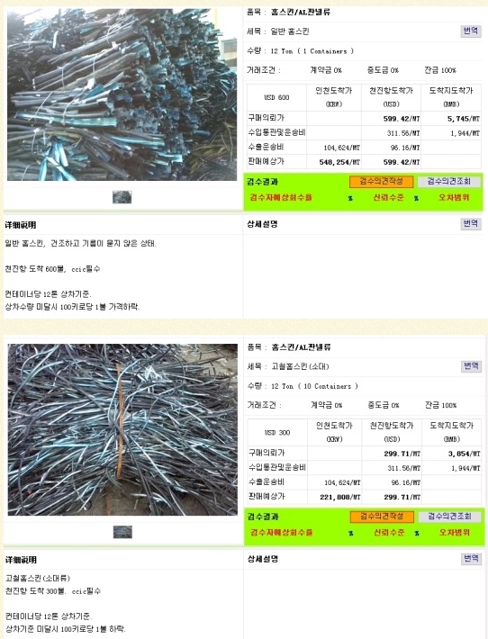한국내 스크랩 중국수입이 있으신 업체 문의바랍니다.