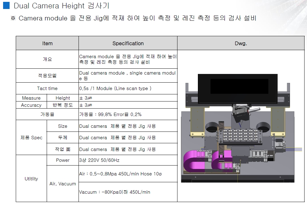 Camera module 을 전용 Jig에 적재 하여 높이 측정 및 레진 측정 등의 검사 설비