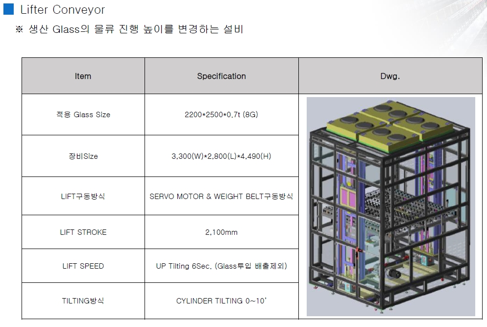 생산 Glass의 물류 진행 높이를 변경하는 설비