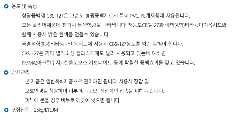 고순도 형광증백제, PVC, PE계제품