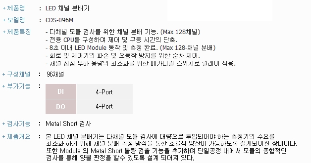 - 8초 이내 LED Module 동작 및 측정 완료. (Max 128-채널 분배)