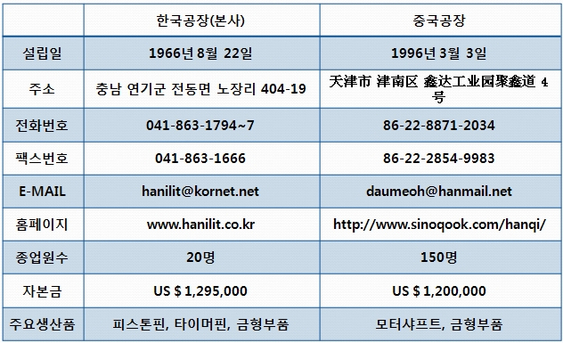 - 기업형태 : 한국외자기업(중국내 독자로 투자한 한국기업)