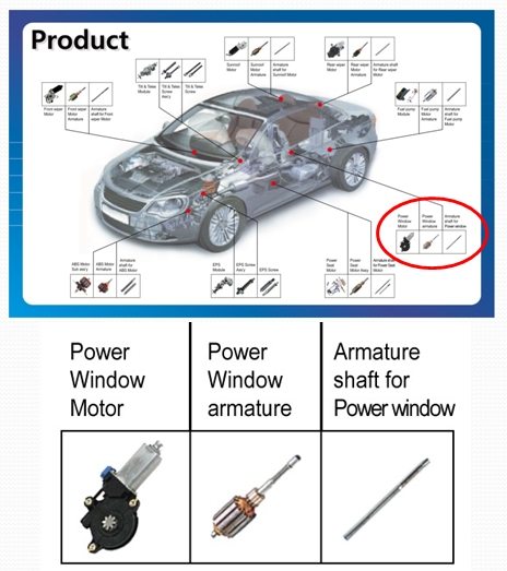 파워윈도우 모터 샤프트 - Power window motor shaft