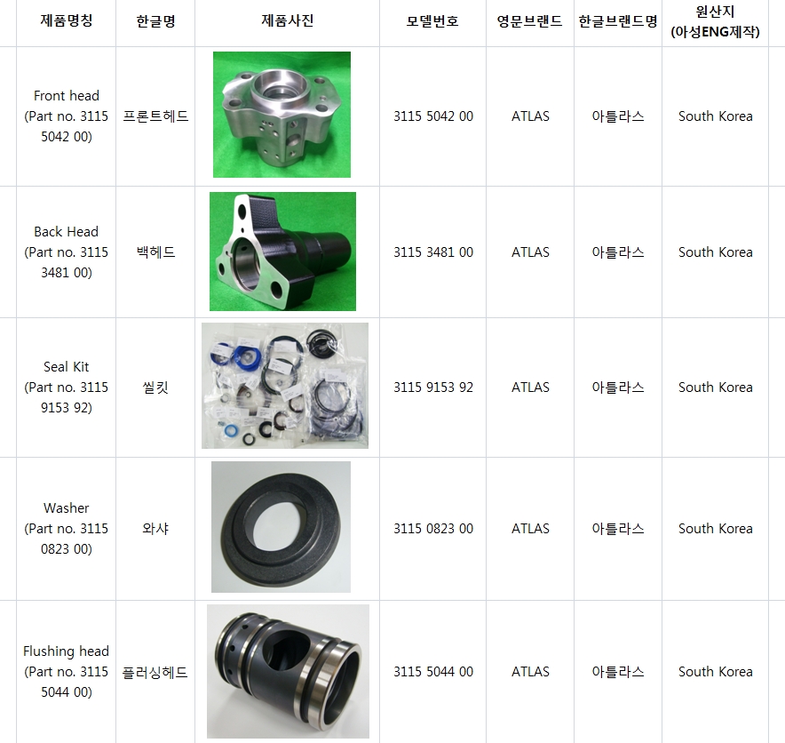 - 아틀라스,야마모토,탐록샌드빅,전진,후루까와,수산,도요 착암기 부품가공