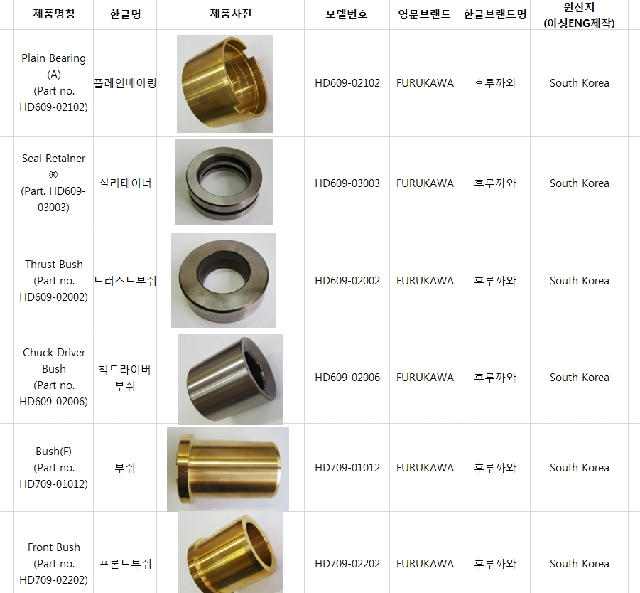 - 아틀라스,야마모토,탐록샌드빅,전진,후루까와,수산,도요 착암기 부품가공