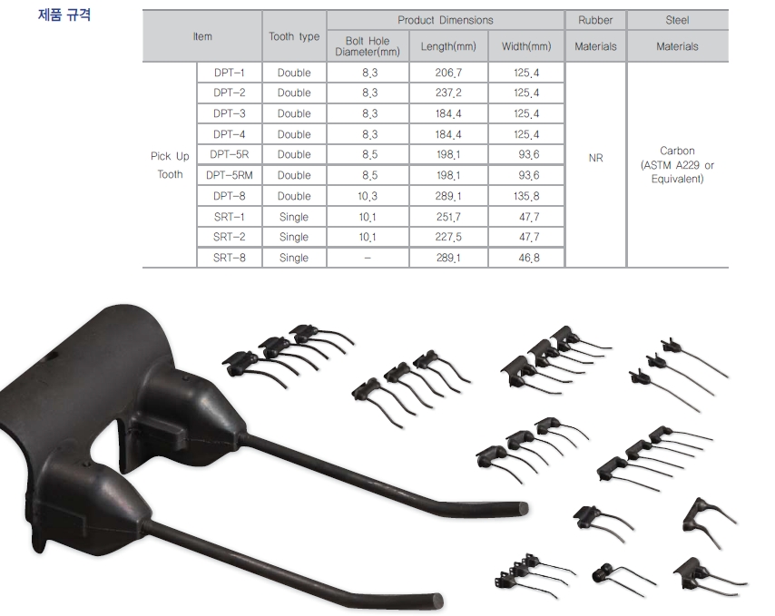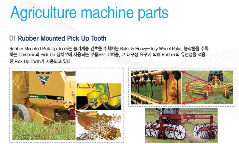 농기계용 고무지지대,러버마운트,레버마운트,고무사출,Rubber Mounted Pick Up Tooth
