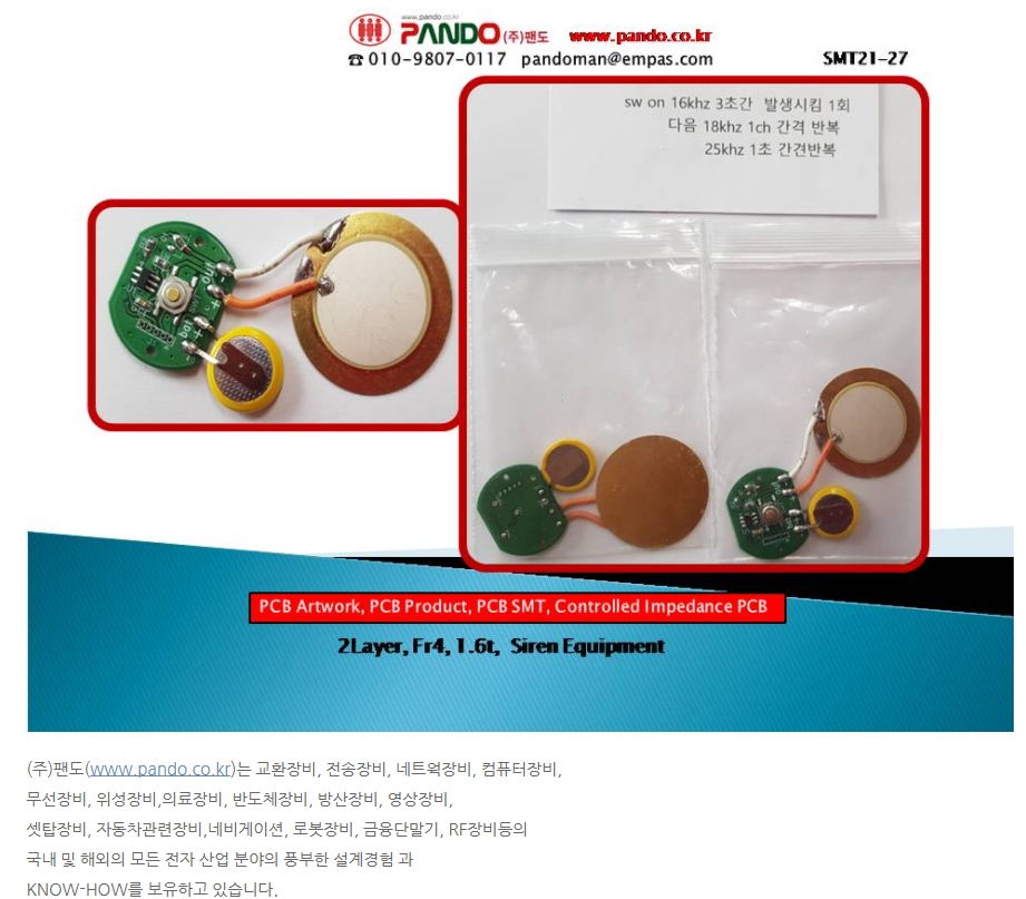 1. PCB조립가공,2층 사이렌 장치 artwork pcb설계 pcb제작 pcb조립