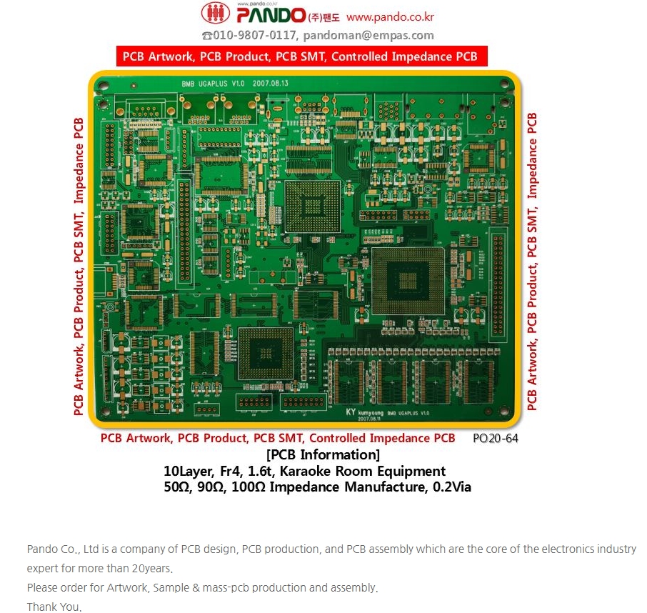 1. PCB제작,10층 노래방장비 50옴 impedance설계 아트웍 pcb설계 pcb제작 smd작업
