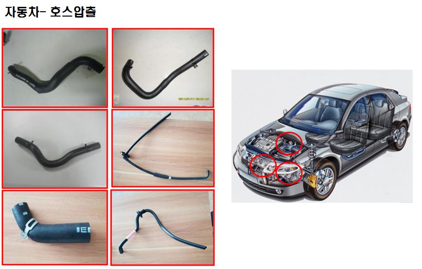 자동차용(철접착고무,방진고무,오링,실리콘고무,저압호스,특수고무등) 산업용(철접착고무,오링등) |
