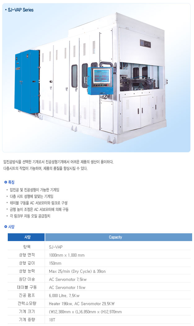 압진공방식을 선택한 기계로서 진공성형기에서 어려운 제품의