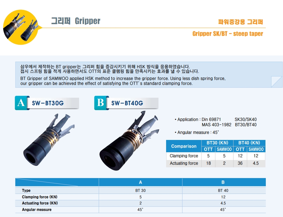 삼우에서 제작하는 BT gripper는 HSK방식을 응용하여