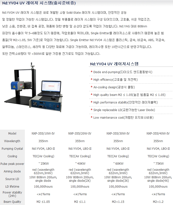 Nd:YVO4 UV 레이저 시스템은 새로 개발된 소형 Solid-State 레이저 시스템