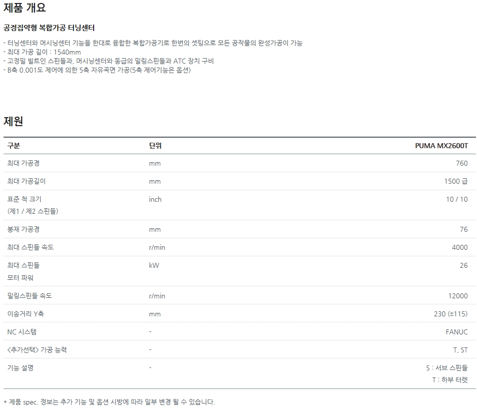 선반과 머시닝센터 기능을 모두 구비한 복합가공 터닝센터입니다.