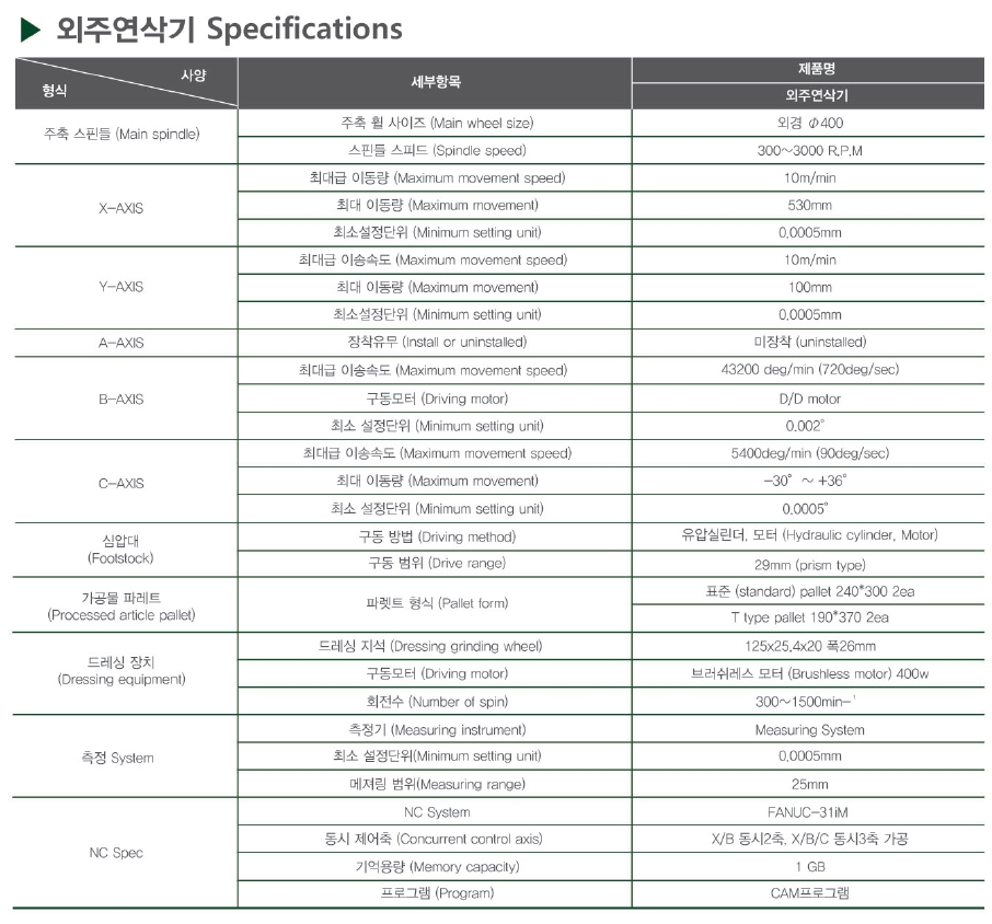 CNC외주연삭기, 공구연삭기 등