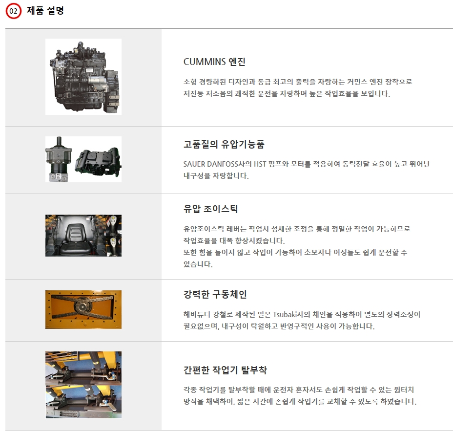 주요 생산품 스키드스티어로더, 지게차 인증서 종업원수 7 공장면적 m2 주요거래업체 축산 농가 등 민간 주요산업대상 농축산용 스키드스티어로더, 지게차 주요영업지역 대한민국, 러시아/남미/동남아시아 제품브랜드