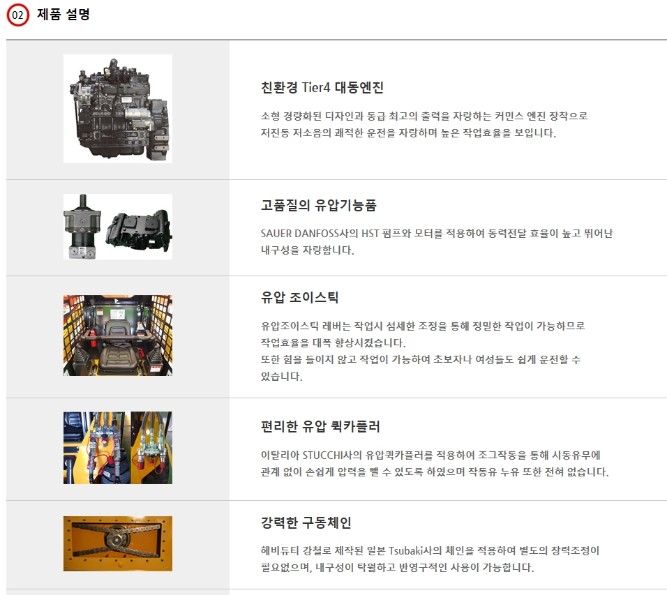 주요 생산품 스키드스티어로더, 지게차 인증서 종업원수 7 공장면적 m2 주요거래업체 축산 농가 등 민간 주요산업대상 농축산용 스키드스티어로더, 지게차 주요영업지역 대한민국, 러시아/남미/동남아시아 제품브랜드