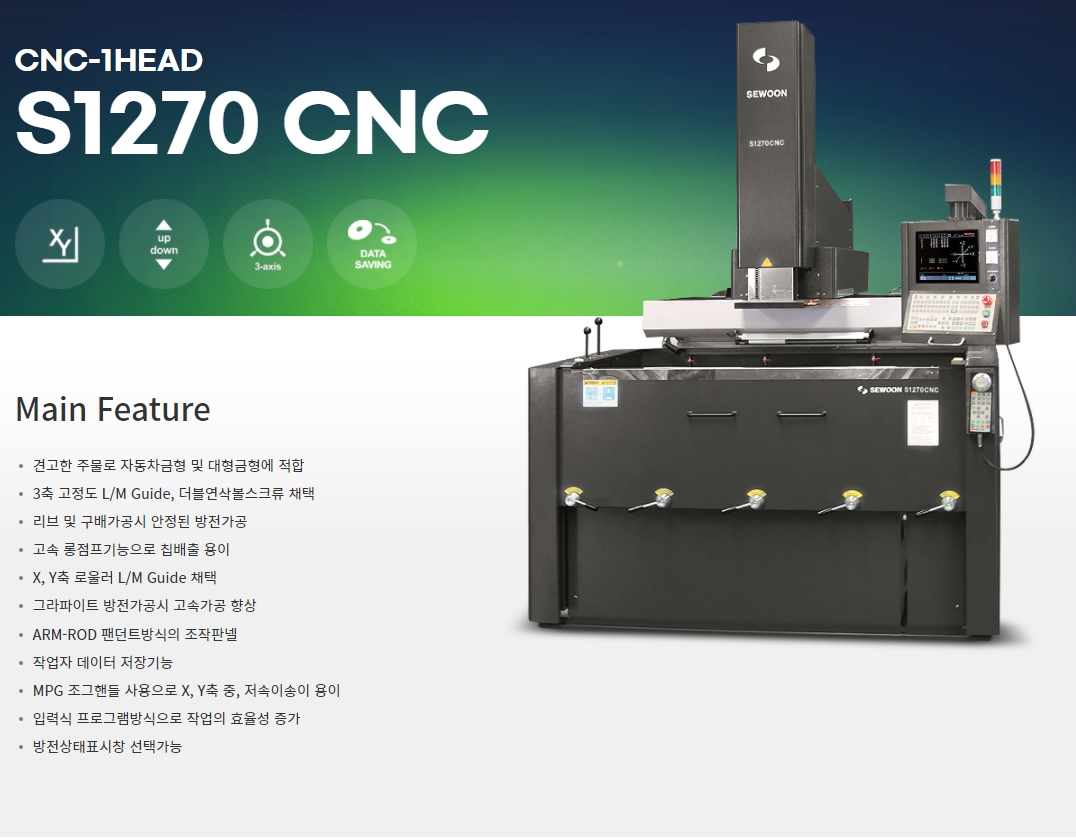 1헤드 CNC방전가공기,1헤드 CNC와이어커팅기,자동차금형 및 대형금형 적합,1헤드 CNC와이어방전기