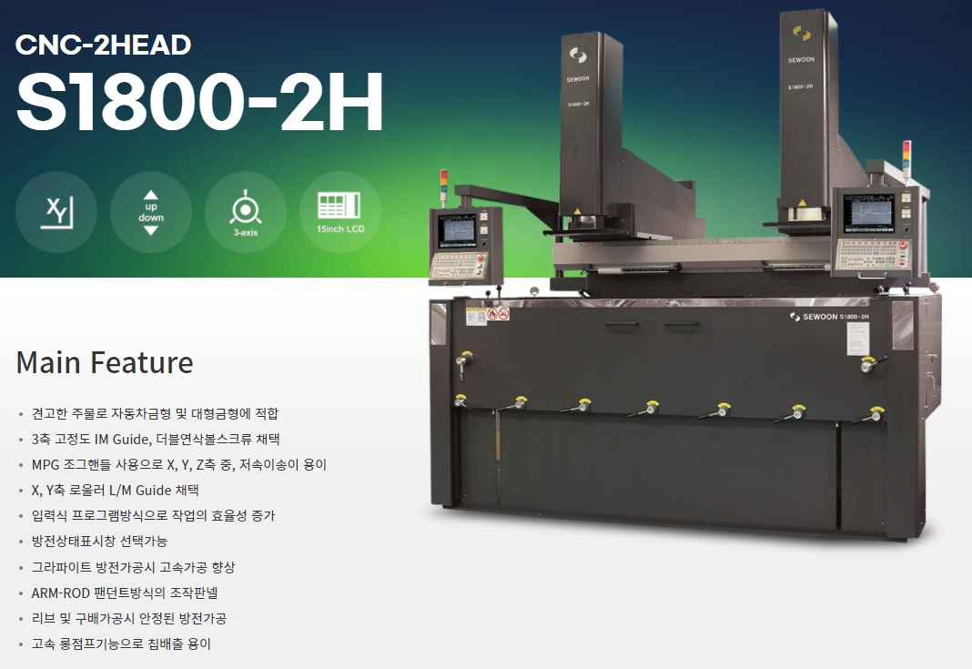 2헤드 CNC방전가공기,2헤드 CNC와이어커팅기,자동차금형 및 대형금형 적합,2헤드 CNC와이어방전기