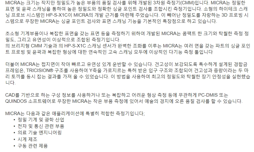 소형정밀3차원측정기,소형정밀삼차원측정기,헥사곤측정기,MICRA