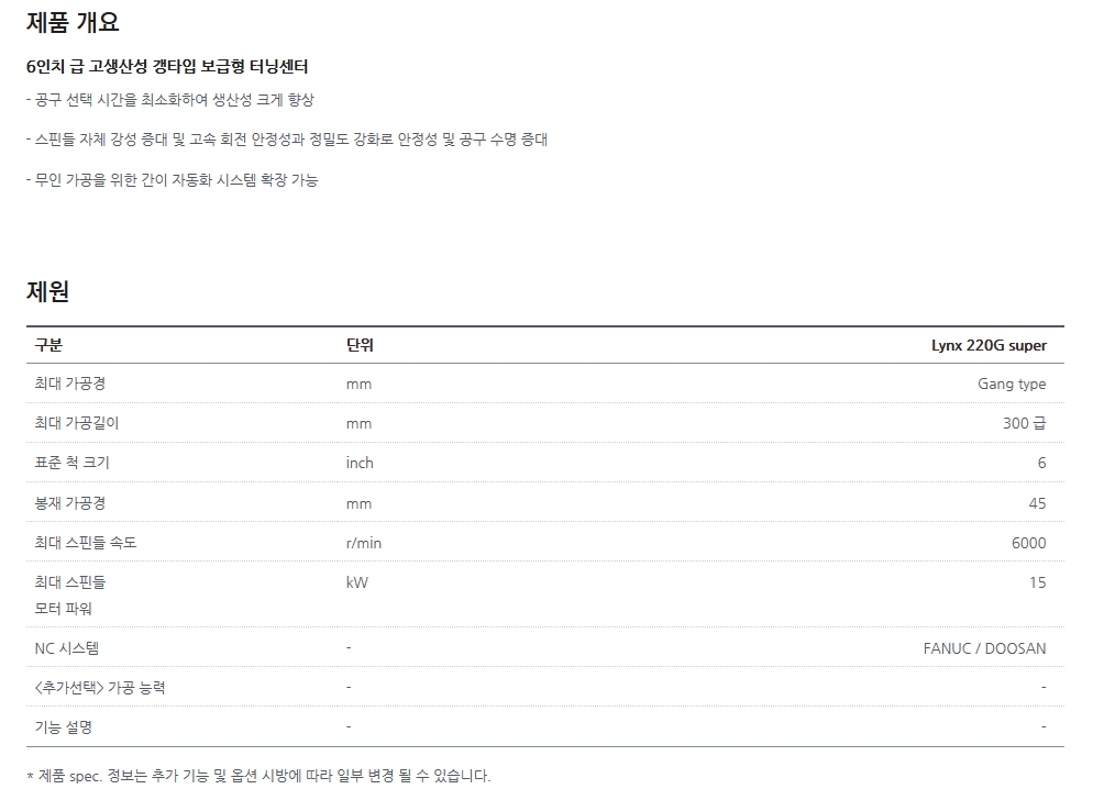 척 사이즈 6~10인치 급 컴팩트형 고속 터닝센터입니다.