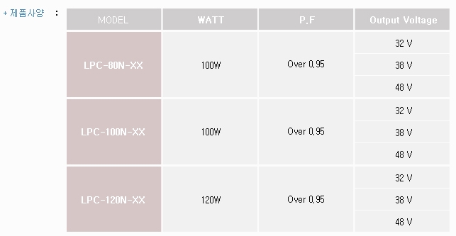 - 80W , 100W , 120W 의 기능별 제품 그룹군 구성.