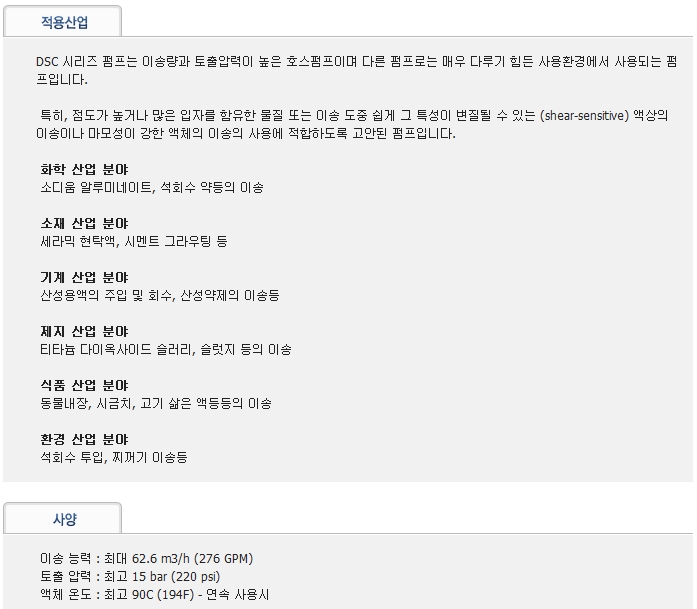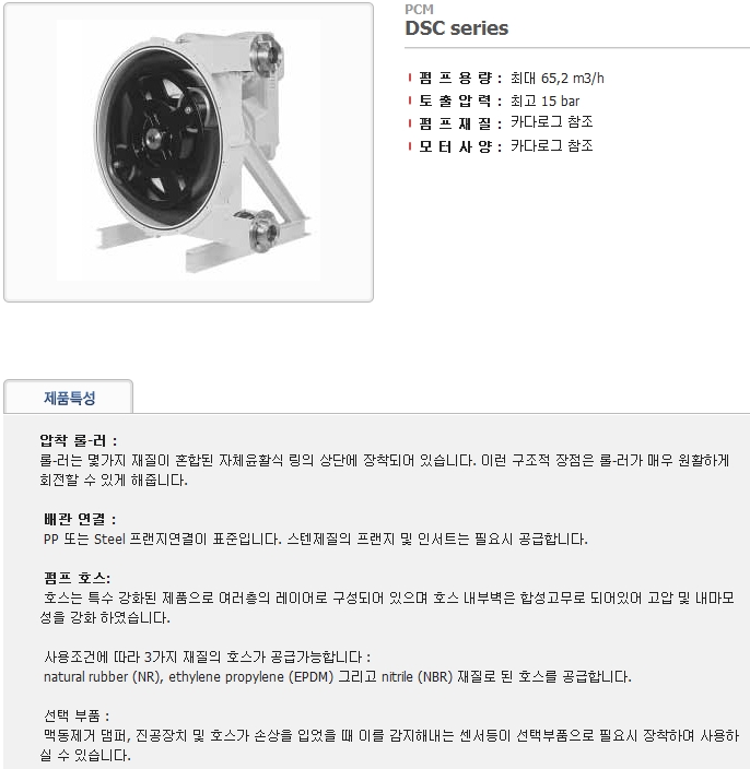 펌 프 용 량 : 최대 65,2 m3/h