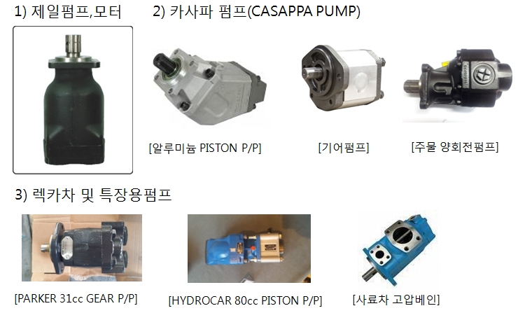 특장차,산업기계,시험기등 각종 유압부품이 필요한
